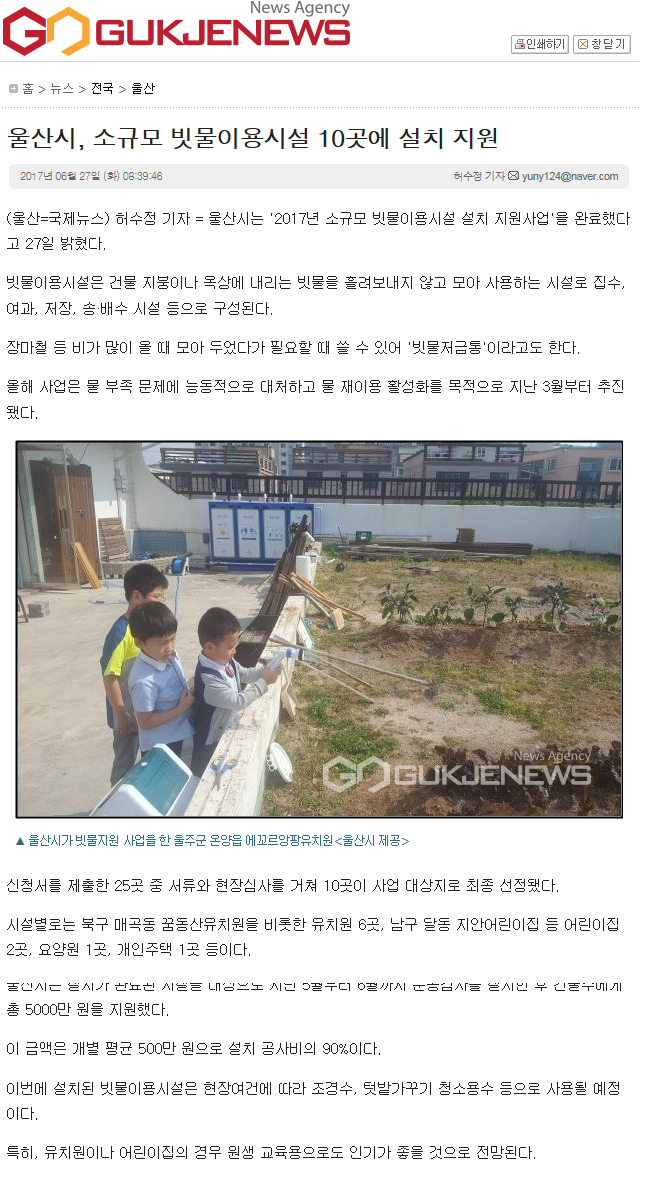 Ulsan, "collect and use wasted rainwater with rainwater storage"